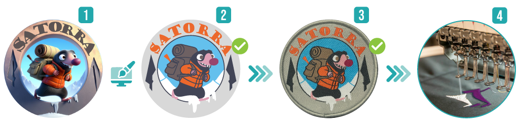Una vez aprobado el ajuste, recibirás una muestra fotográfica de tu patch (3) que, una vez confirmada, dará inicio a la producción (4).