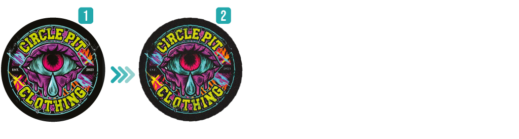 Si deseas mantener intacto tu proyecto (1), la solución ideal es la patch sublimada, impresión directa sobre tela, que permite una reproducción más fiel (2) y sin compromisos.